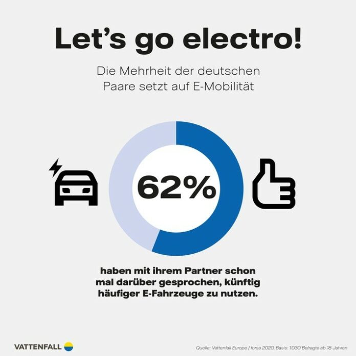 Wer sich mit Autos beschäftigt, kommt mittlerweile an Elektromobilität nicht mehr vorbei. Wie offen stehen deutsche Paare dem Thema gegenüber? Sehr positiv! 62 Prozent haben schon mal mit ihrem Partner darüber gesprochen, in Zukunft noch häufiger E-Autos zu nutzen. Kein Wunder, Hersteller bringen kontinuierlich neue attraktive Modelle auf den Markt, der Staat unterstützt mit Fördermöglichkeiten und auch das „Tanken“ wird immer einfacher.