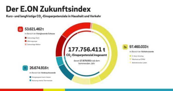 178 Millionen Tonnen CO2 jährlich in Haushalt und Verkehr – E.ON Zukunftsindex zeigt Einsparpotenzial von Balkon-Kraftwerken, E-Auto, Wärmepumpe und Co.