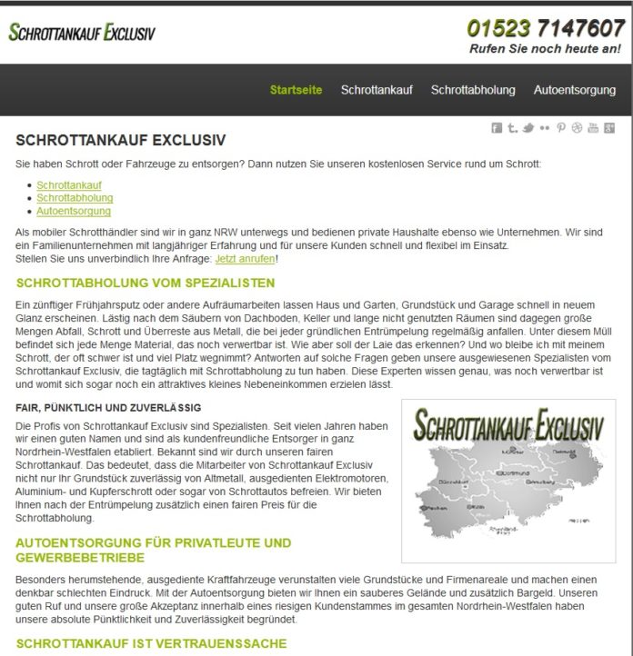 Ein Telefonat klärt über die Superkonditionen für den Schrottankauf auf: 015237147607